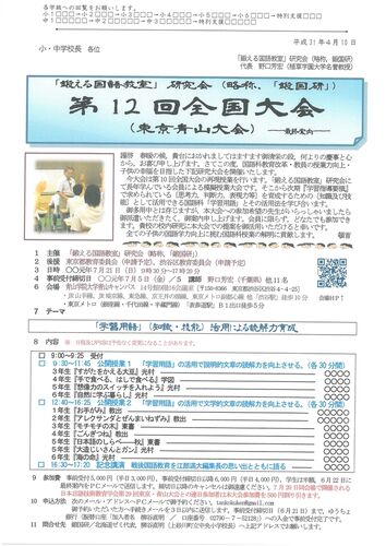 初の長野開催です。2日日程で開催します。鍛国研設立25周年を記念して,じっくり学び合います。いらっしゃいませんか。お待ちしています。 [http:// 「鍛える国語教室」研究会(略称,鍛国研)第11回全国大会(長野大会) 関連のイベント:長野 野口芳宏 教…