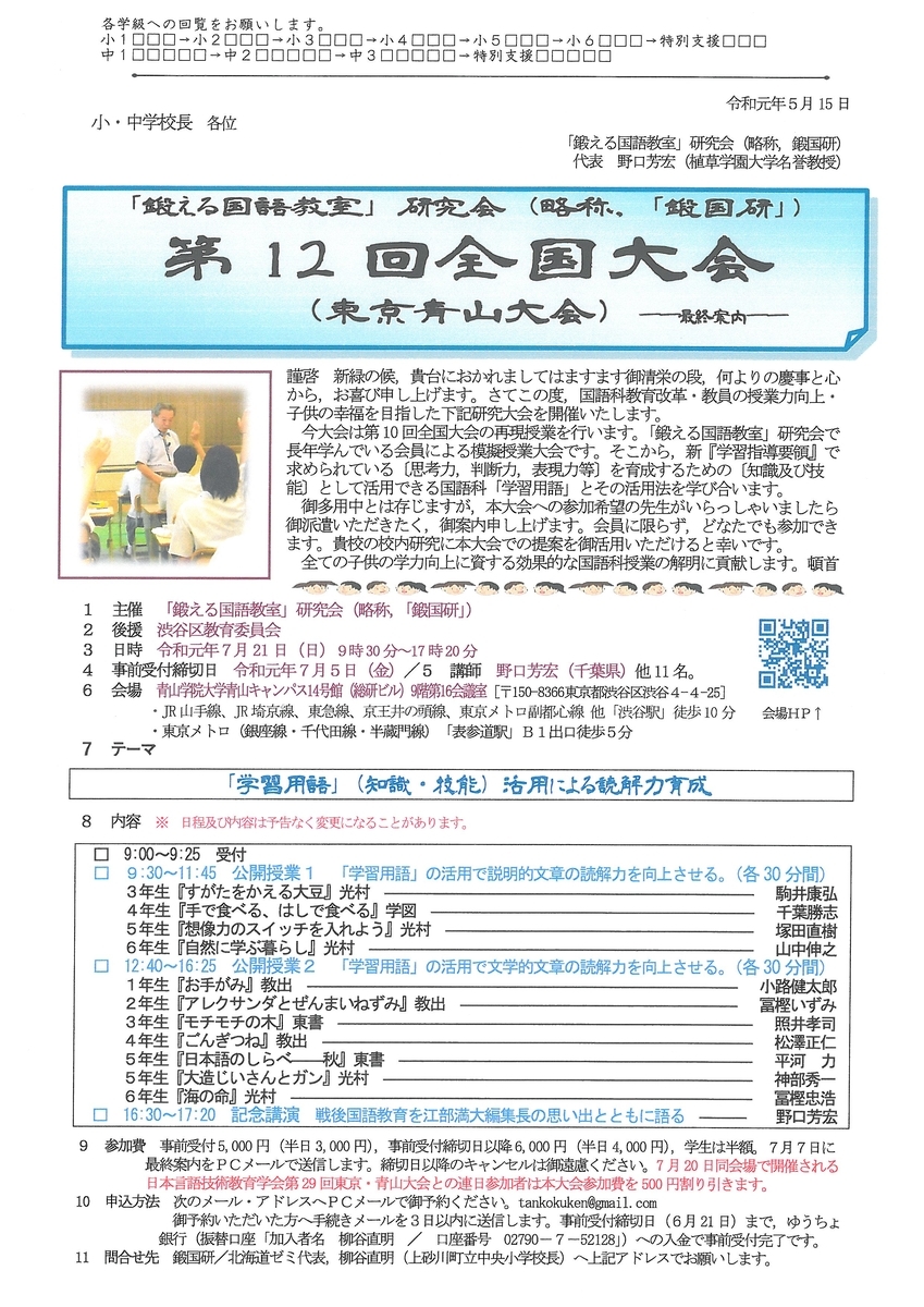 2018-12-27 「鍛える国語教室」研究会第12回全国大会(東京青山大会)募集開始! コクチーズでお申し込みください。 www.kokuchpro.com senseiportal.com 010721「鍛える国語教室」研究会(略称,「鍛国研」)第12回全国大会(東京青山大会)